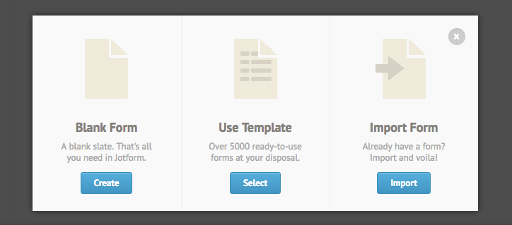 3. Select what kind of form you want to start building (we chose Blank).