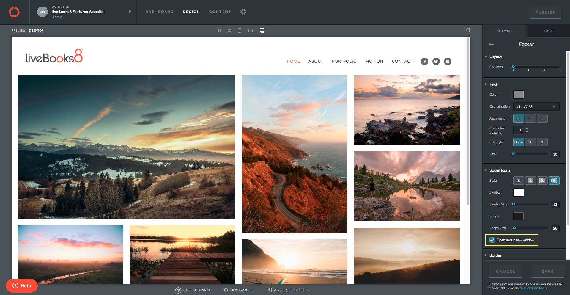3. Scroll down to the Social Icons options, and tick the box labeled "Open links in new window".