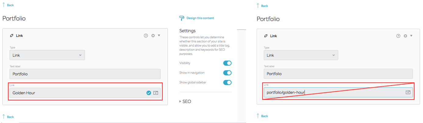 Note: Our editing features are smart in that when you start typing a URL into the link box, it will suggest pages already on your website. You should always choose a suggested page link rather than a normal URL to it. This will keep everything set up the way it should be and allow you to navigate correctly throughout the Design panel.