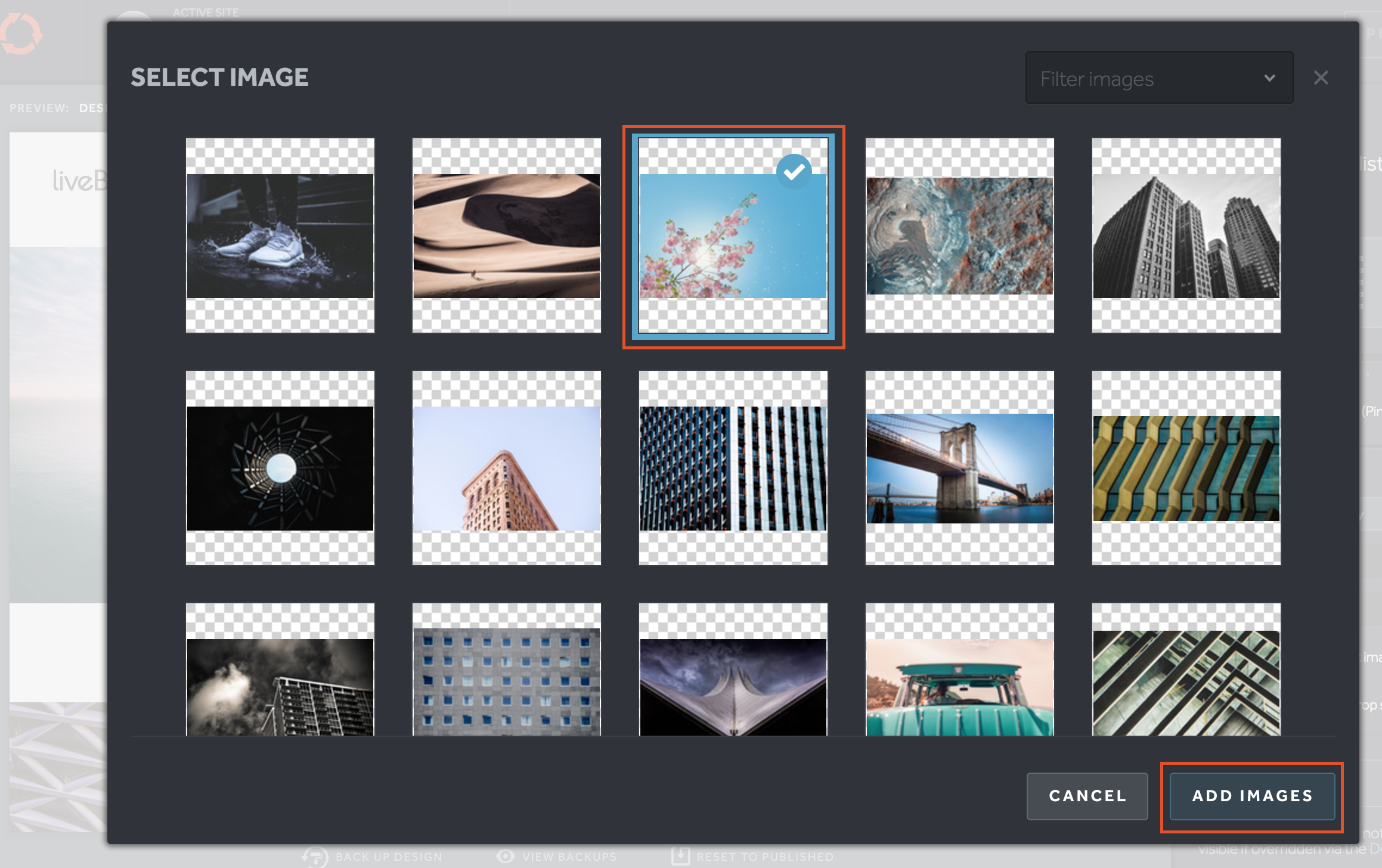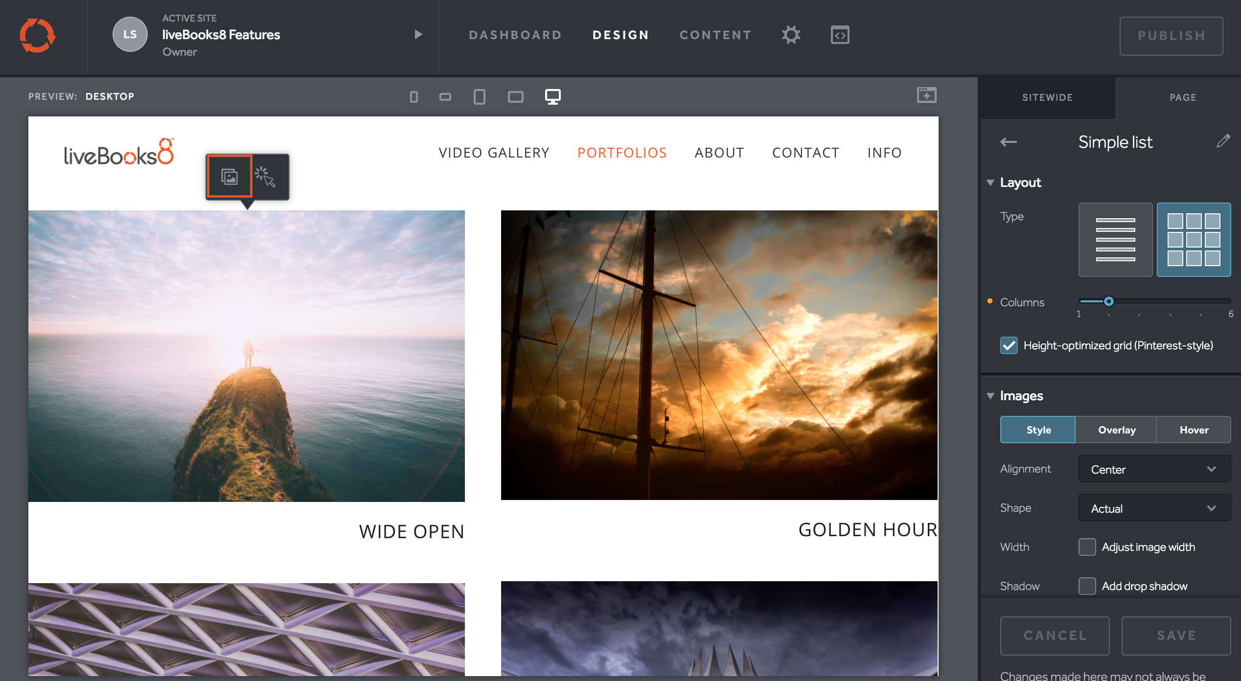 Within your liveBooks dashboard, you can swap out images on the fly.