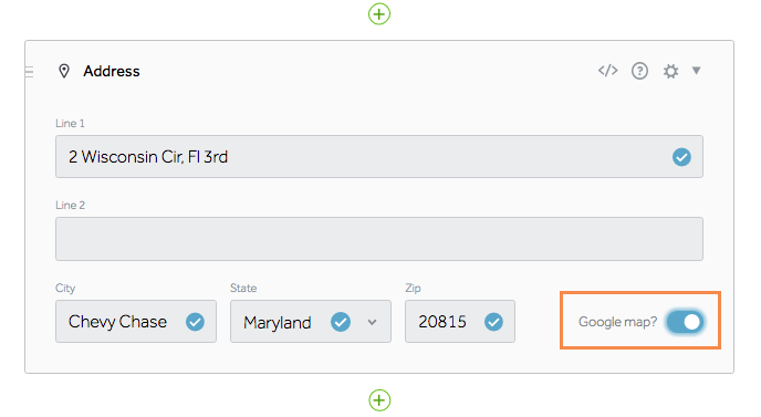 4. Find the Address block and enter your location's address in its field. Enable a Google Map by toggling the option on.