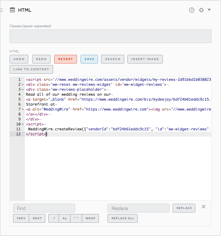 5. Paste the code you want to embed into the new content block you have created.