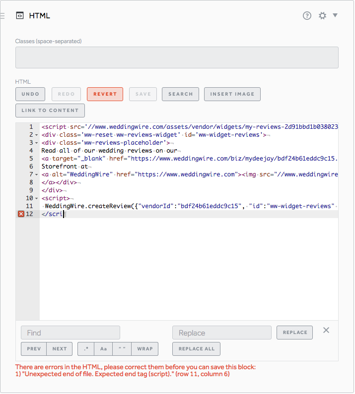 Note: if you paste it incorrectly, you will be notified at the bottom of the block in red.