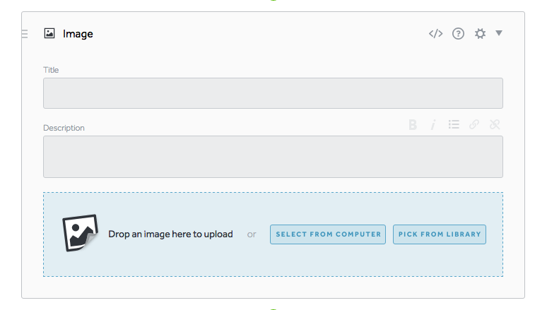 2. While on the page, click on the green (+) icon that appears between the content blocks and select the Image or Image Gallery.
