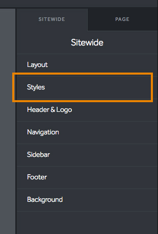 1. Select the Design tab in the gray navigation bar and click into the Sitewide tab in the right-hand menu, and select Styles.