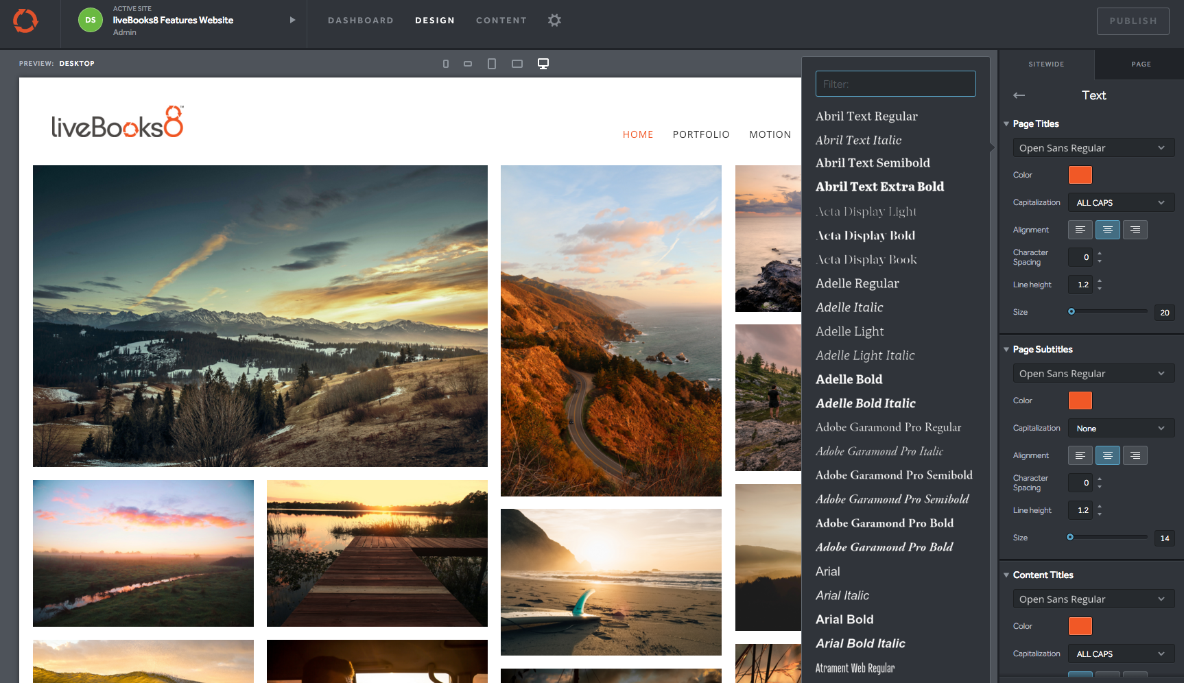 Our partnership with Adobe Typekit allows you to add the highest quality fonts to your website. click here for a full list of font type options.