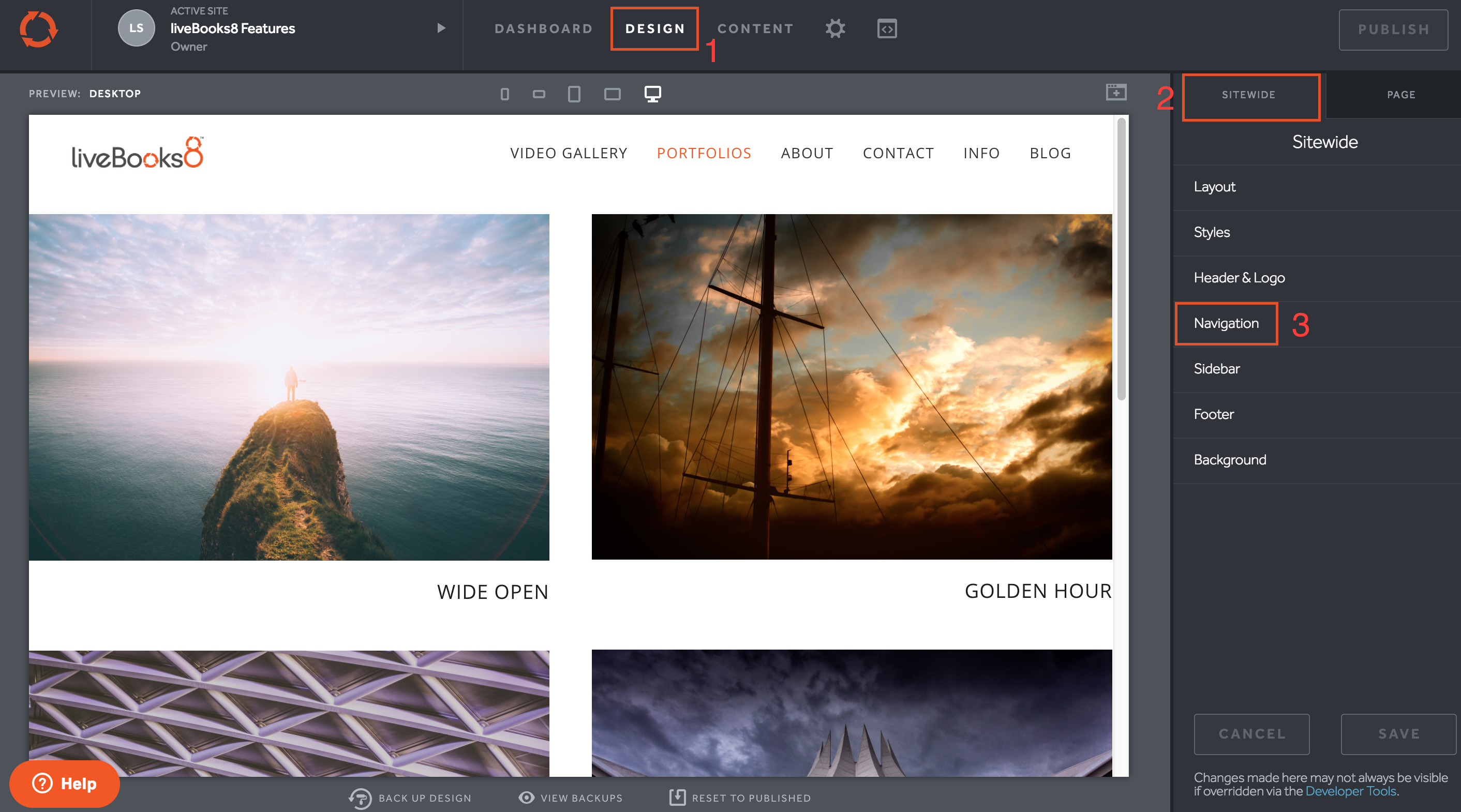 - Select Design from the Dashboard navigation bar.