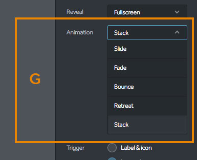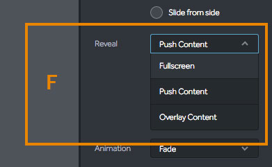 (F) Reveal - Select how the navigation reveals the menu items:
