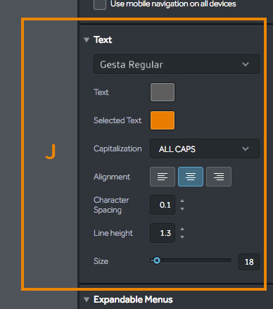 | (J) Select your desired font and stylings for your navigation menu. |