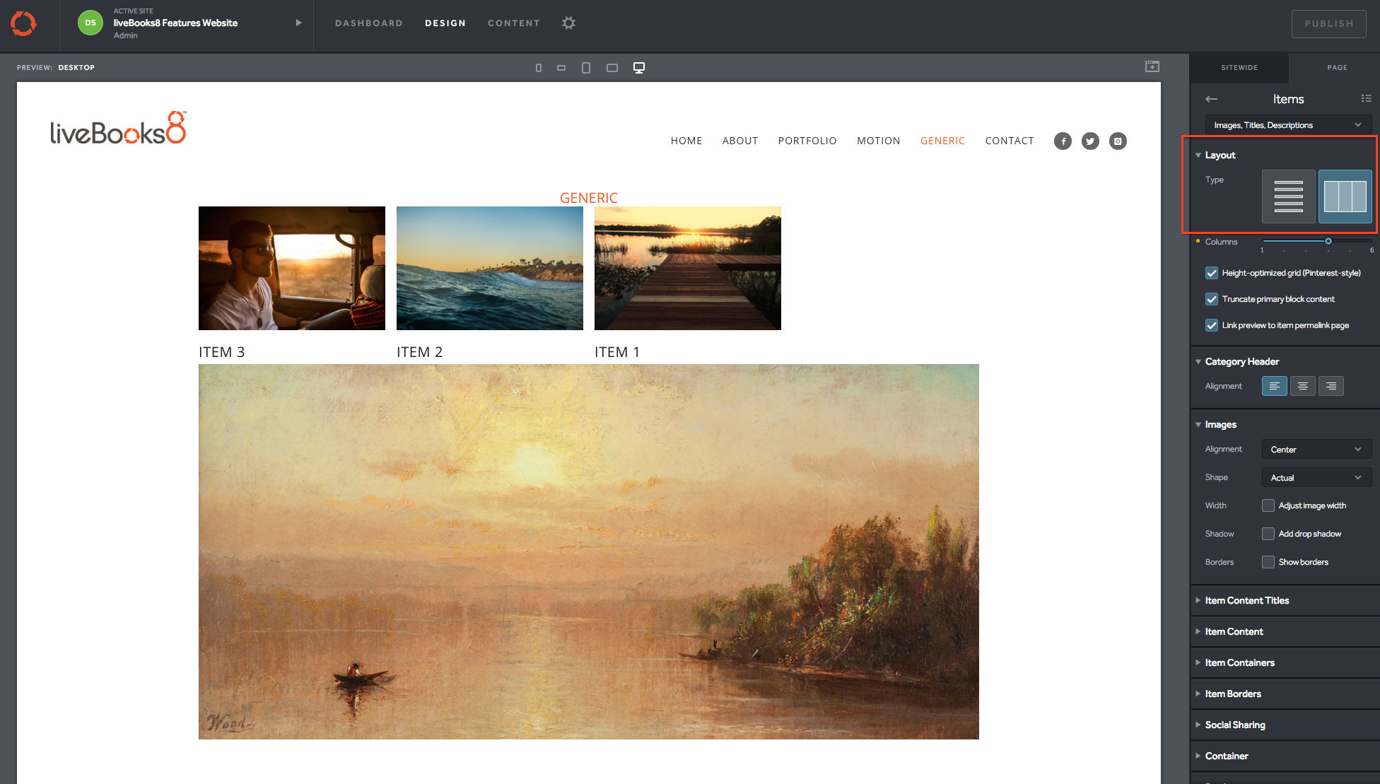 2. Select the page you would like to change the columns for. Click the List title from the right-hand sidebar. Then, use the Layout type field to change the view from rows to columns.
