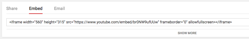 1. First, grab your embed code. It should look something like this, found under your video on YouTube:
