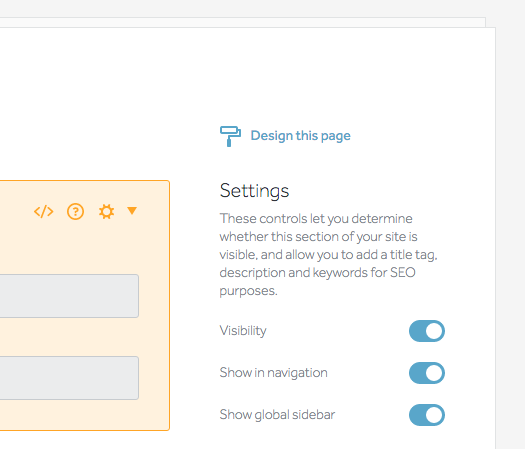1. After adding your Image Gallery to your page, select Design this page at the top of the sidebar