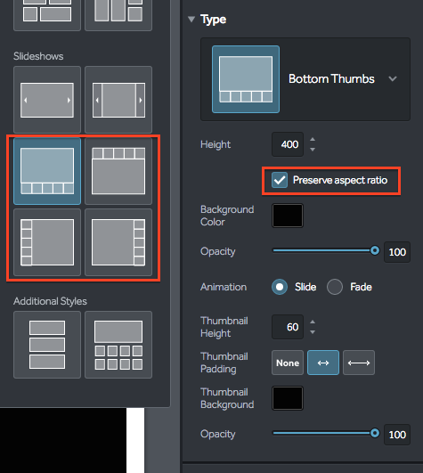 6. Unless you specifically don't want this option, we suggest you check "Preserve Aspect Ratio". If left un-ticked, this feature zooms and crops images to make room for the thumbnails.